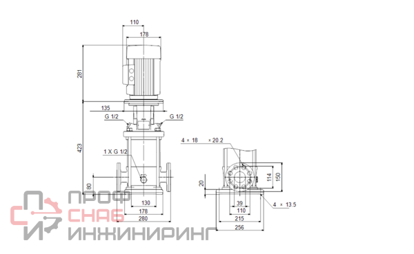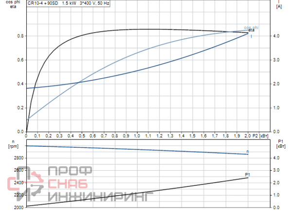 Вертикальный многоступенчатый центробежный насос с всасывающим и напорным патрубками, расположенными на одном уровне ("ин-лайн"), что обеспечивает возможность установки в горизонтальной однотрубной системе. Головная часть и основание насоса из чугуна - все остальные контактирующие с перекачиваемой жидкостью детали из нержавеющей стали. Картриджное уплотнение вала обеспечивает высокую надежность, безопасное использование и легкий доступ для обслуживания. Вращение передается через разъемную муфту. Соединение трубопровода выполняется с помощью комбинированных фланцев стандартов DIN-JIS. Насос оснащен асинхронным 3-фазным электродвигателем на лапах, с воздушным охлаждением.