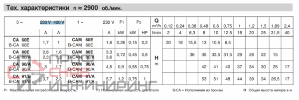 Насосы модельного ряда Calpeda СА являются водокольцевыми, моноблочными насосами с эффектом самовсасывания. Рабочее колесо выполнено по типу зубчатого венца. Этот насос рассчитан на подачу жидкости содержащей газ или воздух, которая подается к всасывающему патрубку с недлительными перебоями, а также для подъема из скважин и колодцев воды с последующей транспортировкой к потребителю. Насосы модельного ряда Calpeda СА применяется для поднятия рабочего давления в распределительных сетях, для перекачивания чистых жидкостей не взрывоопасного характера, не имеющих абразивных и агрессивных компонент, которые могут навредить материалу, применяемому в конструкции насоса.