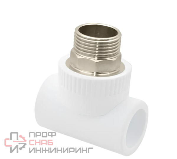 Комбинированный тройник используется для создания резьбового ответвления с наружной резьбой. Тройник изготовлен в соответствии с ГОСТ 32415-2013 и может выдерживать давление до 25 бар. Закладные детали выполнены из высококачественной латуни типа ЛС-59-2 с пониженным содержанием свинца.