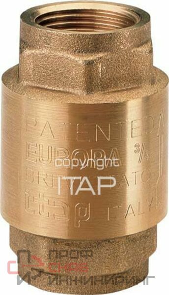 Клапан обратный Itap Europa — трубопроводная арматура проходного типа, предназначенная для защиты системы водопровода и установленного на ней оборудования (насосов, фильтров, накопительных систем). Клапан пропускает воду только в одном направлении, предотвращая её обратное движение при аварийном падении давления в системе.