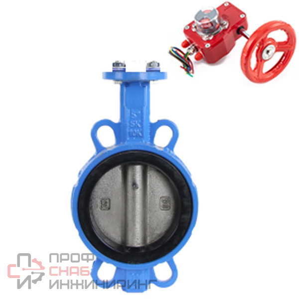 Затвор дисковый поворотный для абразивных сред DN.ru WBV1632E-2W-Fb-H Ду65 Ру16, корпус - чугун QT450, диск - нержавеющая сталь 316L, уплотнение - EPDM, с редуктором DN.ru HGBF RQN1-180Z с индикатором положения и датчиком обратной связи