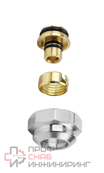 Резьбозажимное соединение (фитинг евроконус) Varmega VM09401 предназначено для соединения трубы 16х2.0 мм с коллекторами и коллекторными узлами с присоединительным размером 1/2", а также с радиаторными клапанами. Состоит из упорной втулки, разрезного обжимного кольца и накидной гайки.