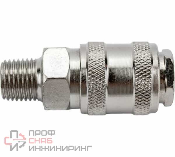 Разъемное соединение быстросъем мама/наружная резьба G1/4, сталь ECO AS-F/MT14 имеет автоматический клапан, перекрывающий канал и предназначено для установки на выходном конце различных элементов пневмосистемы для создания автоматических прерывателей подачи воздуха.