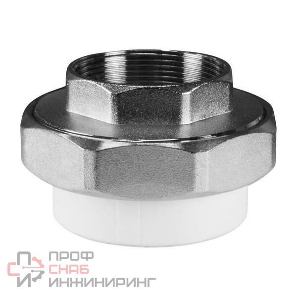 Муфта комбинированная разъёмная (американка) с наружной резьбой — комбинированный полипропиленовый фитинг. Представляет собой разъемное соединение между металлической и пластиковой трубой. Латунные части производятся методом горячего штампования, пластиковые – методом литья под давлением.