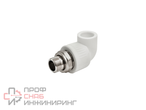 Угольник полипропиленовый комбинированный с американкой НР D20-1/2" КОНТУР изготовлен из полипропилена рандомсополимера (PP-R) с закладным элементом из латуни CW617NПредназначен для разъемного соединения полипропиленовых труб с элементами инженерных коммуникаций с резьбовым подключением под углом 90° в системах ХВС, ГВС и отопления