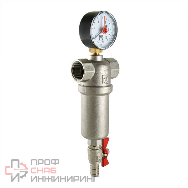 Компактный фильтр механической очистки воды с возможностью удаления накопившихся загрязнений без извлечения сетчатых вставок (промывной фильтр). Оснащен двумя (один в другом) фильтроэлементами из нержавеющей стали. Размер ячеек первичной сетки фильтроэлемента – 1000, вторичной – 250 мкм. Обе сетки, выполненные из нержавеющей стали, конструктивно объединены в сменном фильтрующем элементе (такой фильроэлемент можно приобрести отдельно).Корпус и колба фильтра выполнены из латуни марки CW617N (европейский стандарт EN 12165), никелированы. Предусмотрены дренажный шаровой кран со штуцером для подключения шланга и манометр для контроля уровня загрязненности сеток. Фильтр монтируется в вертикальном положении, колбой вниз. Резьба присоединений – внутренняя.