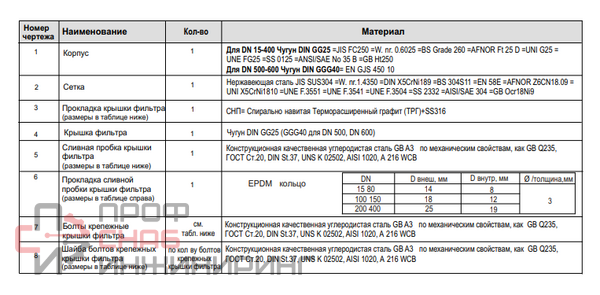 | Материал прокладки | Терморасширенный графит |