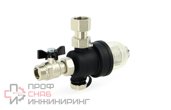 Фильтр-грязеуловитель магнитный для котла предназначен для очистки потока от механических примесей в закрытых системах отопления. Рекомендуется применение с настенными котлами. Фильтр грязеуловитель магнитный состоит из корпуса с двойным уплотнительным кольцом, стеклянной крышки фильтра,магнита, картриджа, шарового крана, соединительного фитинга, прокладок и заглушки.Теплоноситель, двигаясь через фильтр, оставляет немагнитные загрязнения на сетке фильтра, а магнитные загрязненияудерживаются магнитом. По мере загрязнения фильтрующего элемента сопротивление фильтра потоку увеличивается,поэтому его необходимо очищать.Фильтр может устанавливаться как в горизонтальном, так и в вертикальном положении (в этом случае ревизионнаякрышка фильтра должна быть направлена вниз) в соответствии со стрелками на корпусе, указывающие направлениепотока. Конструкция позволяет установку фильтра во всех указанных положениях. Установите шаровой кран на обратныйтрубопровод и соединительный фитинг на подачу в котёл (накидной гайкой к фильтру), и подключите с помощьюпрокладок и накидных гаек. Оптимальное расположение фильтра – непосредственно под настенным котлом с подводомтеплоносителя от (из) стены, ревизионной крышкой в низ.Для прочистки фильтра необходимо перекрыть шаровой кран на входе в фильтр и отсечной кран на трубопроводеподачи, опорожнить фильтр с участком трубопровода ослабив заглушку сливного отверстия, после чего отвернутькрышку фильтра и прочистить сетку и магнит. Для очистки магнитных загрязнений достаточно вынуть магнит из гильзыи очистить загрязнённую поверхность гильзы. Будьте аккуратны для не допущения загрязнения самого магнитногоэлемента – его очистка может вызвать существенные затруднения.