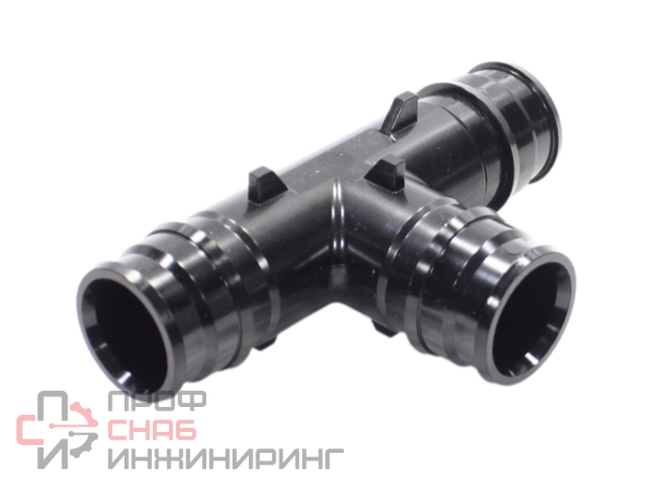 Тройник из ударопрочного пластика (PPSU, полифенилсульфон) предназначен для использования с расширительным инструментом для соединения труб.Принцип соединения реализуется благодаря наличию у трубы PE-Xa молекулярной памяти, вследствии чего труба возвращает свою первоначальную форму после расширения тем самым обжимая фитинг.
