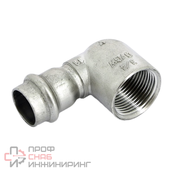 Угол пресс-В компактный нержавеющая сталь - незаменимый фитинг для изменения направления трубопровода при переходе от прессового к резьбовому соединению в монтаже систем холодного и горячего водоснабжения, систем отопления, сантехнического оборудования. Допускается только однократное обжатие угла пресс-клещами.