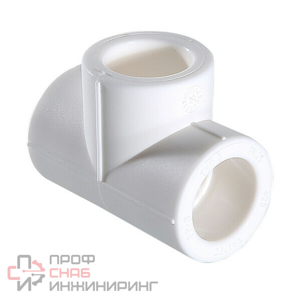 Трехсторонний равнопроходной фитинг для монтажа полипропиленовой трубопроводной системы методом раструбной сварки.