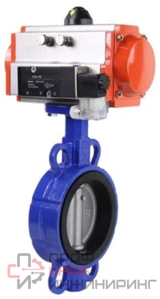 Затвор дисковый поворотный DN.ru WBV3432N-2W-Fb-H Ду125 Ру16, корпус - углеродистая сталь WCB, диск - нержавеющая сталь 316L, уплотнение - NBR, с пневмоприводом DN.ru PA-DA-105 и пневмораспределителем 4M310-08 220В