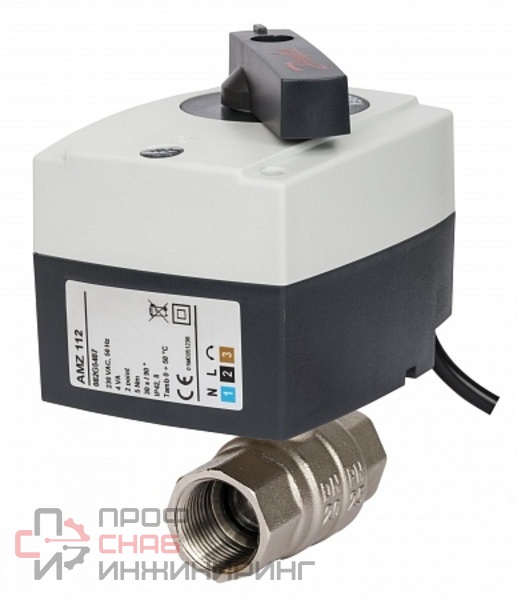 Кран двухпозиционный шаровый с электроприводом, Тип AMZ Модификация AMZ 112. Проходной, двухпозиционный клапан может работать в сочетании с комнатными термостатами компании Danfoss типа RET 230 и программируемыми комнатными термостатами типа ТP 5000/7000.