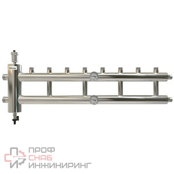 Предназначен для обустройства систем отопления с пятью потребителями тепла с различными параметрами расхода и температуры теплоносителя. Состоит из подающего и обратного коллекторов, расположенных друг над другом и встроенного гидравлического разделителя. Коллектор со встроенной гидрострелкой значительно упрощает и ускоряет монтаж системы отопления, это готовое изделие с минимумом разборных соединений значительно повышает надежность системы.Коллектор и гидрострелка спроектированы на самом предприятии Прокситерм, изготовлены на автоматизированных линиях, проверены перед упаковкой. Это позволяет обеспечить правильную работу системы отопления и увязать работу нескольких насосов на контурах.