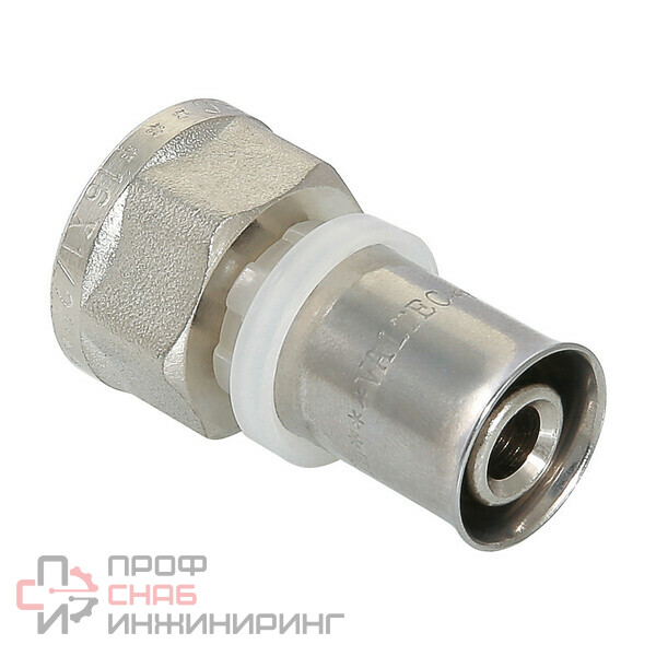 Пресс-фитинг с переходом на внутреннюю резьбу применяется в качестве соединителя металлопластиковой (металлополимерной) либо PEX-трубы и элемента системы с резьбовым патрубком – крана, клапана и т.д. Областью применения фитинга являются системы водоснабжения, отопления, трубопроводы технологического назначения, транспортирующие среды, которые неагрессивны к латуни, материалу уплотнений (EPDM), используемой трубы. Корпус изделия никелирован. Пресс-гильза изготовлена из нержавеющей стали AISI 304, фиксатор – из нейлона. Резьба – внутренняя, соответствует ГОСТу 6357. Опрессовка гильзы фитинга производится пресс-инструментом с насадками «ТН».