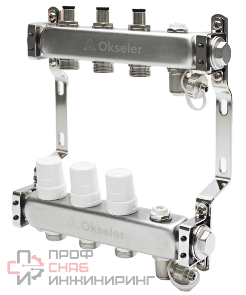 Коллекторы Okseler с регулировочными клапанами – это эффективное решение для организации системы отопления и теплого пола. Блоки произведены из нержавеющей стали марки AISI 304, которая является одним из самых экологичных материалов. Толщина стенки коллекторного блока Okseler увеличена и составляет 1,6 мм (при стандарте 1,5 мм). Коллекторные блоки имеют увеличенное проходное сечение 40x40.7 мм (16.28 см2) и обладают повышенной пропускной способностью.