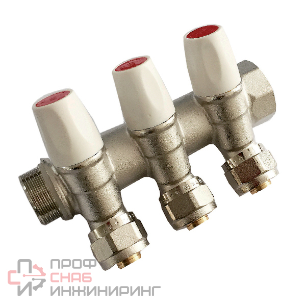 Коллектор со встроенными регулировочными вентилями распределяет рабочую жидкость по потребителям, а также имеет возможность отключения каждого из них и позволяет регулировать расход воды для каждого потребителя в отдельности.