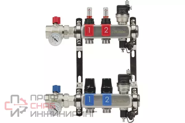 Коллекторный блок OKSELER из нержавеющей стали с расходомерами и автоматическими воздухоотводчикамиПредназначен для систем водяного отопления и теплых полов. Обеспечивает точное распределение теплоносителя по контурам, контроль расхода и температуры. Изготовлен из нержавеющей стали AISI 304 для долговечной работы в системах отопления.