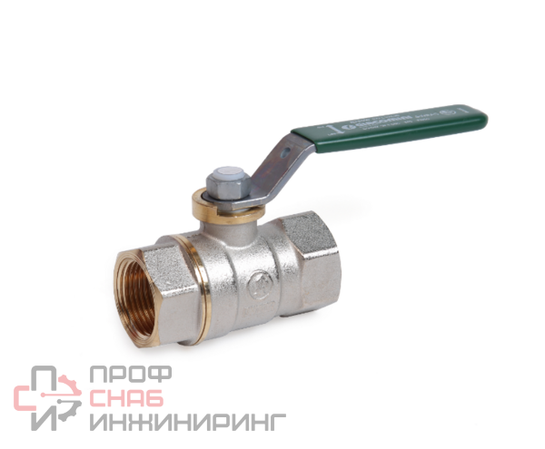 Кран шаровой со стандартным проходом, с зеленой рычажной рукояткой, хромированный, с низким содержанием свинца, для питьевой воды.