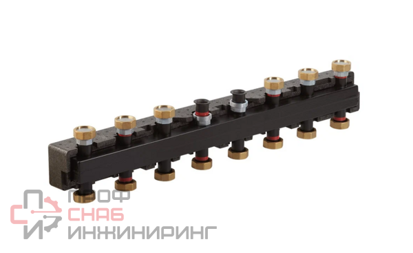 Модель коллектора, в котором теплоноситель необходимо раздавать на несколько потребителей тепла (более одного) с разными параметрами (расход теплоносителя, гидравлическое сопротивление, температурный график).Верхнее подключение G 1"1/2 подача справа (накидная гайка); нижнее подключение G 1"1/2 плоское уплотнение (наружная резьба).